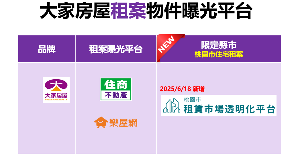 1.無論是否有買樂屋 ,租案都會於住商不動產及樂屋免費曝光。2.桃園市住宅租案會自動在桃園市租賃市場透明化平台免費曝光。